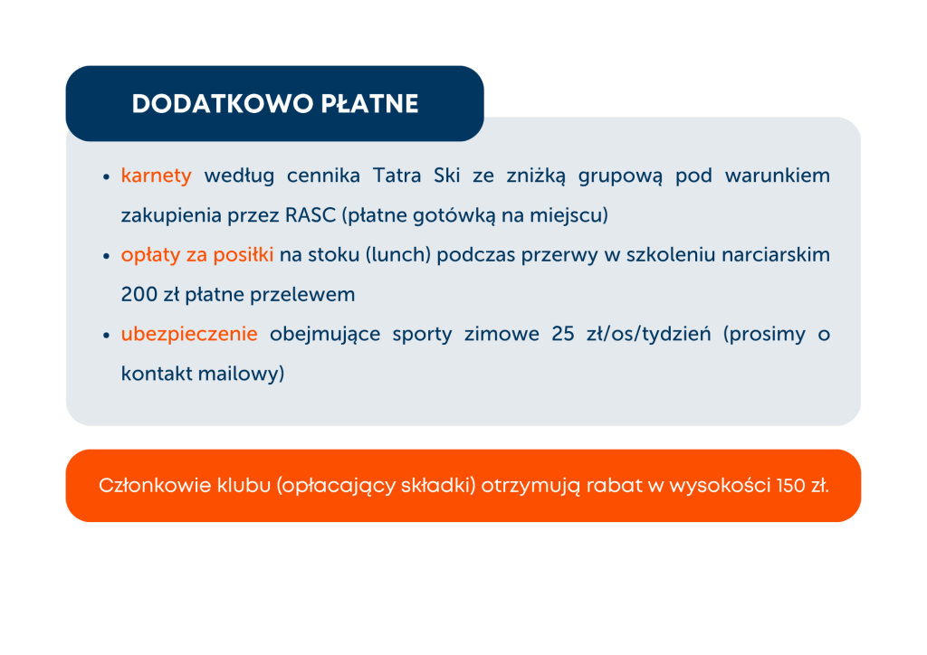 z klubowych grup i ich rodzinach. Chcemy, aby ten wyjazd dał Wam okazję do spokojnego rozjeżdżenia się, nabrania pewności na stoku